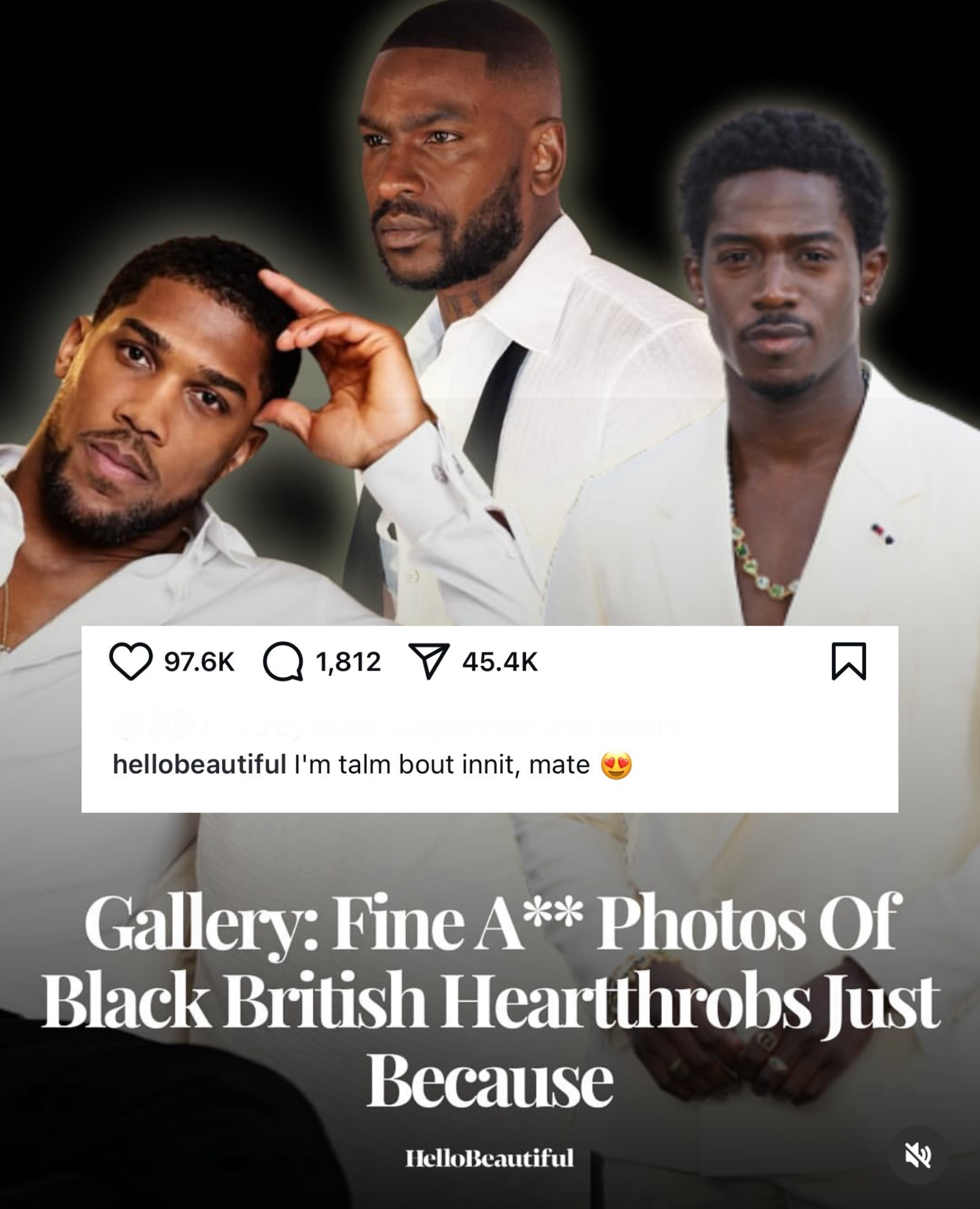 This caption blended Black American internet slang with Black British vernacular to create a sense of shared humor and belonging. The post ran during the same season as our Sexiest Man of the Year campaign which featured British heartthrobs including Anthony Joshua, Damson Idris, Aaron Pierre, and others. Audiences were already thinking about these figures which strengthened recognition and encouraged repeat engagement. The phrasing became a shareable inside joke that spread beyond our core following and circulated through timelines, stories, and group chats.